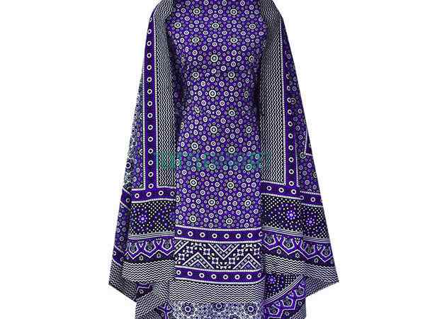 BLUE SINDHI AJRAK SUITE 3PC-UNSTITCHED